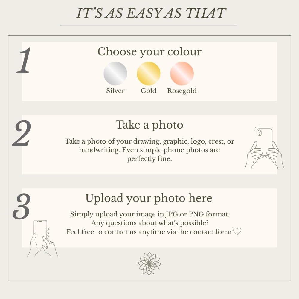 Transform your children's drawings into a unique personalised piece of jewelry. Upload a photo of the drawing and our designers create a necklace or keychain based on your children's creativity. Perfect for mums, dads, grandparents - this personalised jewelry is guaranteed to become one of your favourites.